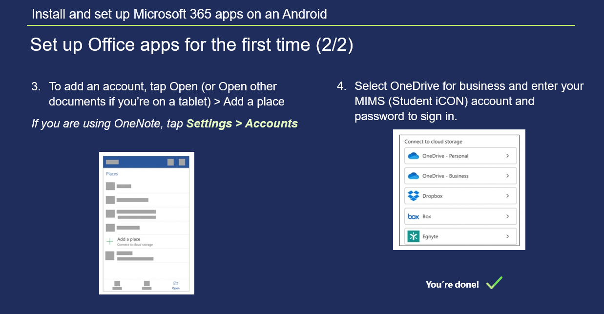Instructions for set up of Microsoft 365